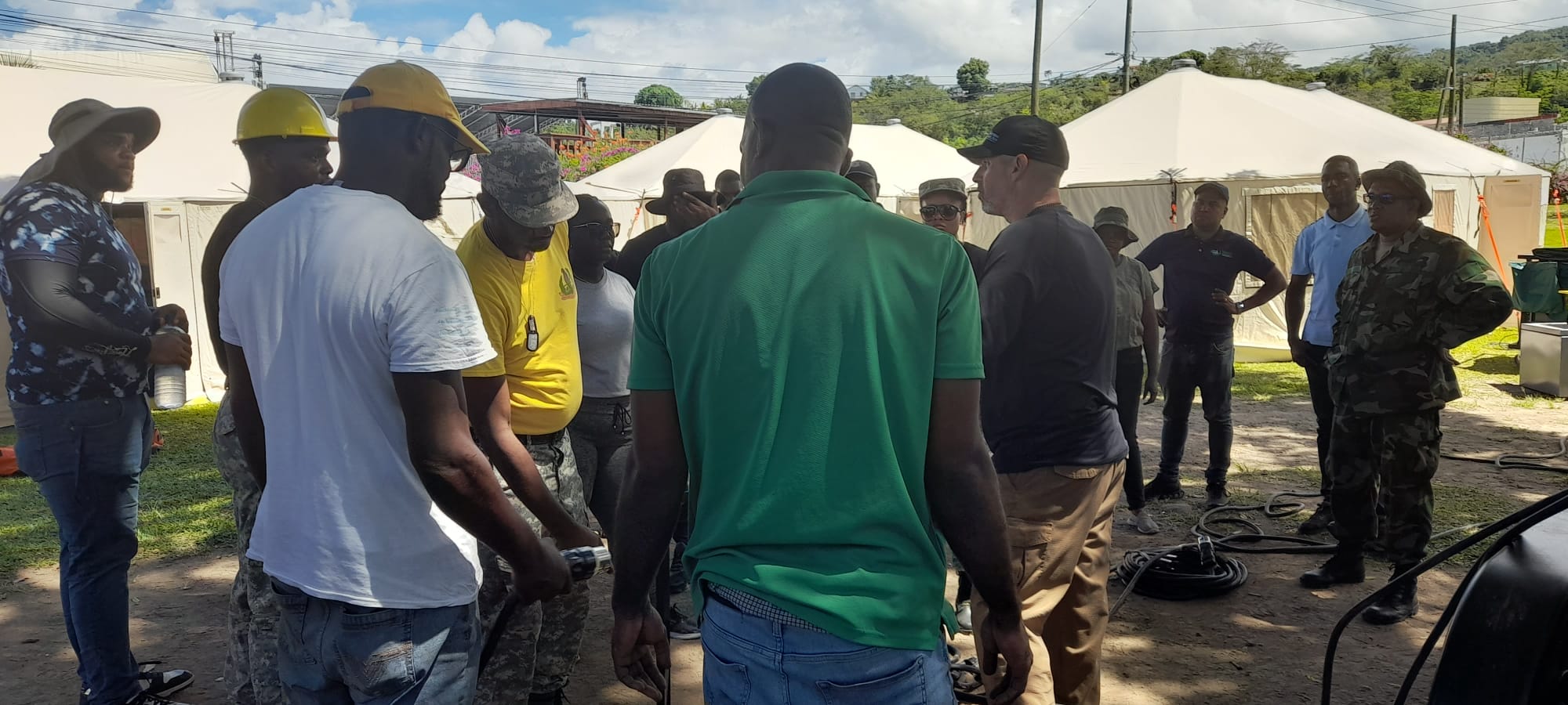 Close to 3O people involved in disaster management in Dominica are receiving training, as a 4O-bed field hospital is being erected at the Botanic Gardens.