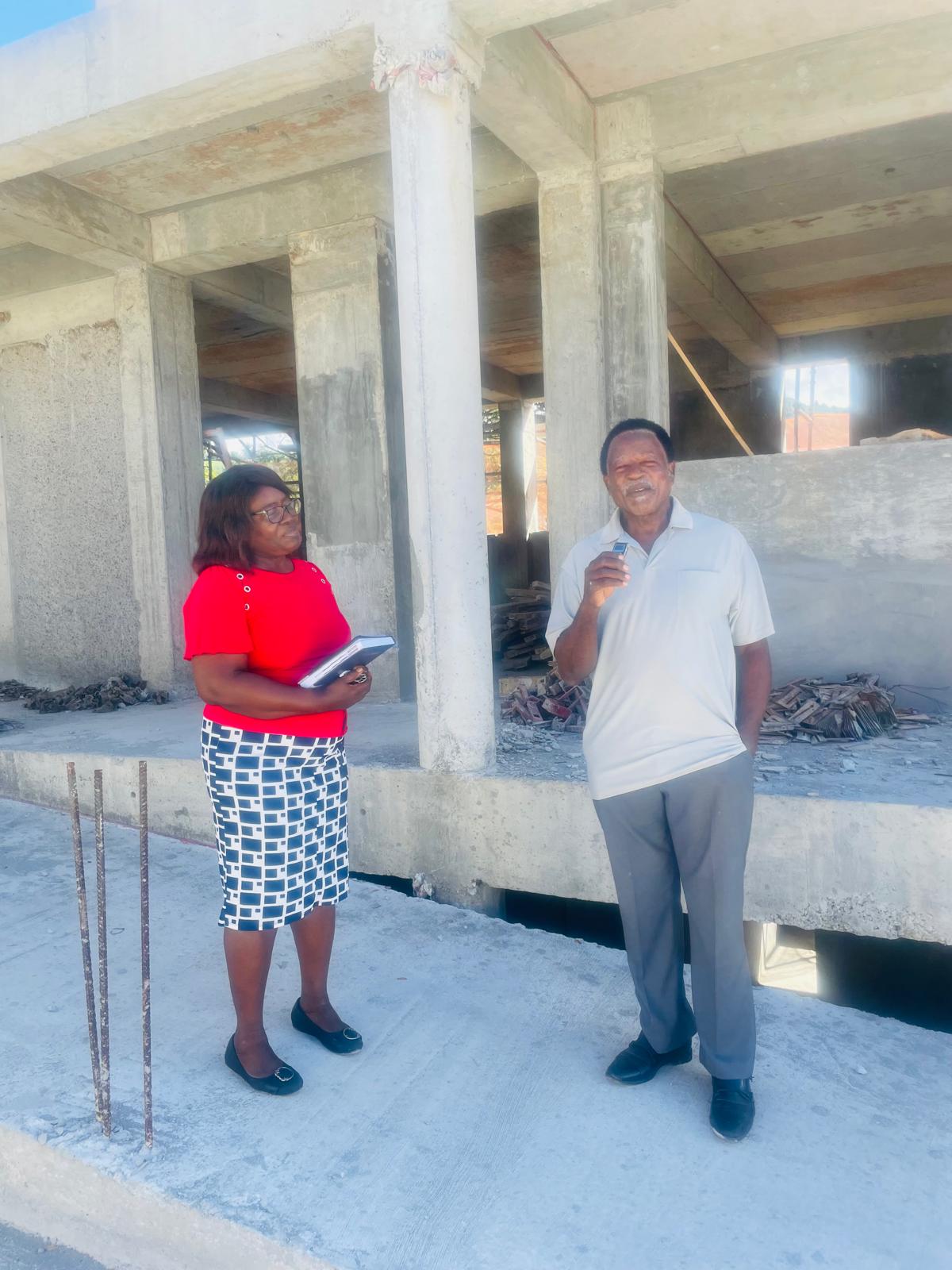 Project Manager Ezra Fabien is expressing satisfaction with the progress of construction on the 6 million dollar Ebenezer SDA Primary School.